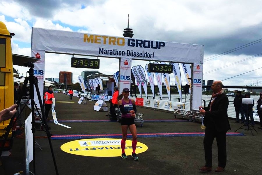 Zsófia az ideálisnak nem mondható nehéz körülmények ellenére (hideg, havas eső, szél) 2:35:34 idővel nyerte a maratont.